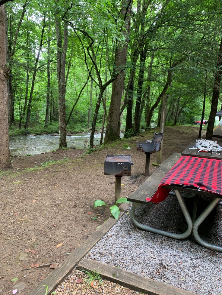 After our exciting night on Grassy Ridge Bald we headed over to Roan Mountain State Park. Check in is not until 4 so we went into the town of Roan Mountain and found a BBQ place open at 10:30 called Bob’s Dairyland. Turns out they serve breakfast yay! I got 2 eggs, bacon , biscuits and gravy. They didn’t have grits? Hmmm