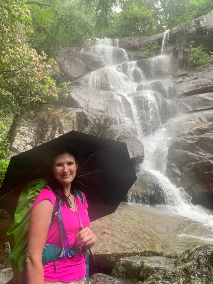 It started raining near here. Brandi took out an umbrella. A ways up the trail we ran into some people coming back and a man says ” I’ve never seen anyone hike with an umbrella”. He should of seen her gnat hat! 🤣🤣 girl has her equipment down pat! I said I haven’t seen anything like it since a catholic mass!