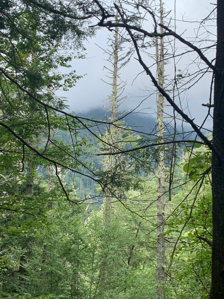 It’s already late so we went to sleep. We woke up bright and early and started our day. After breakfast we waited for the store to open grabbed a cup of coffee and headed to the trailhead. It was actually in the Great Smokey National Park. Down a long dirt road behind the fish hatchery.