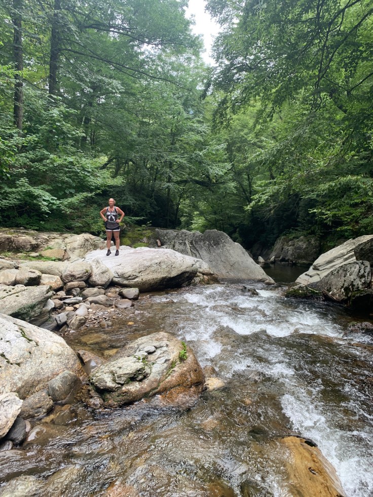 We made a left and go down to the falls. The gnats are so bad here. I don’t know if it’s because I’m sweating, there is horse poop everywhere or the water. I immediately get in the water and try to cool off thinking It would make the gnats leave me alone! Nope!