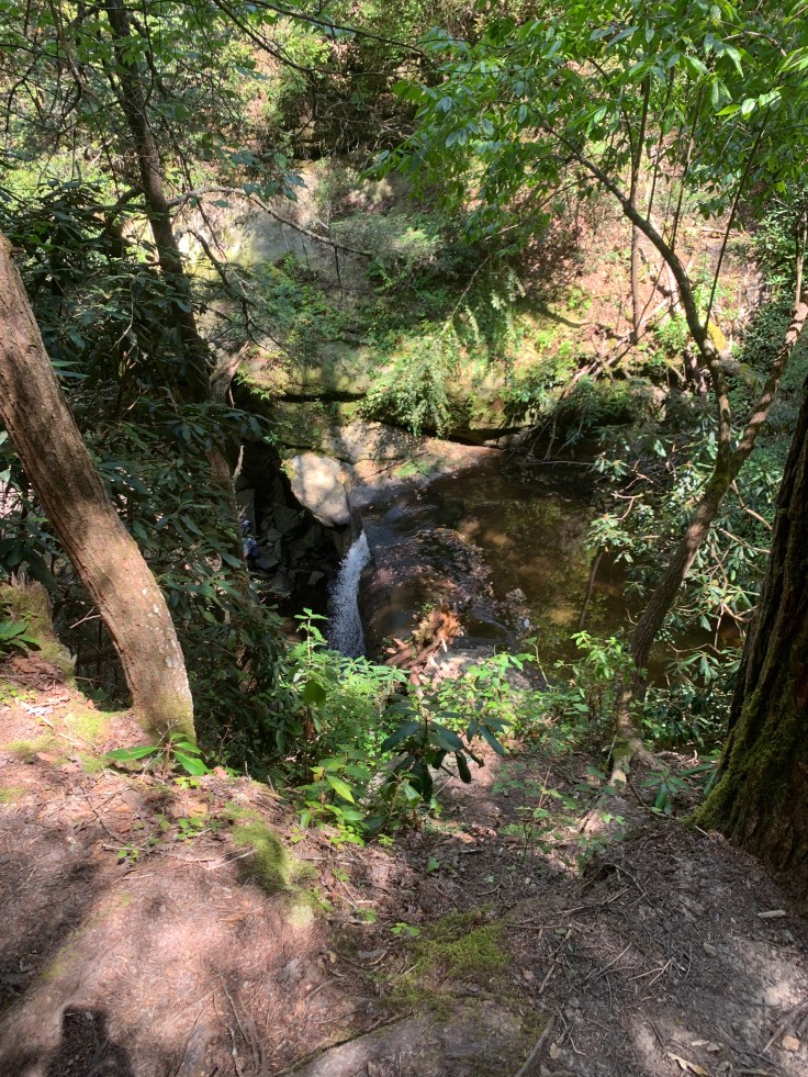We arrive above the falls and can see people down below. A couple of steep switch backs and we are at the falls. I have no idea about the name. I googled it and it said it was rumored to be where people drowned their unwanted pets. 🤦♀️ yikes!