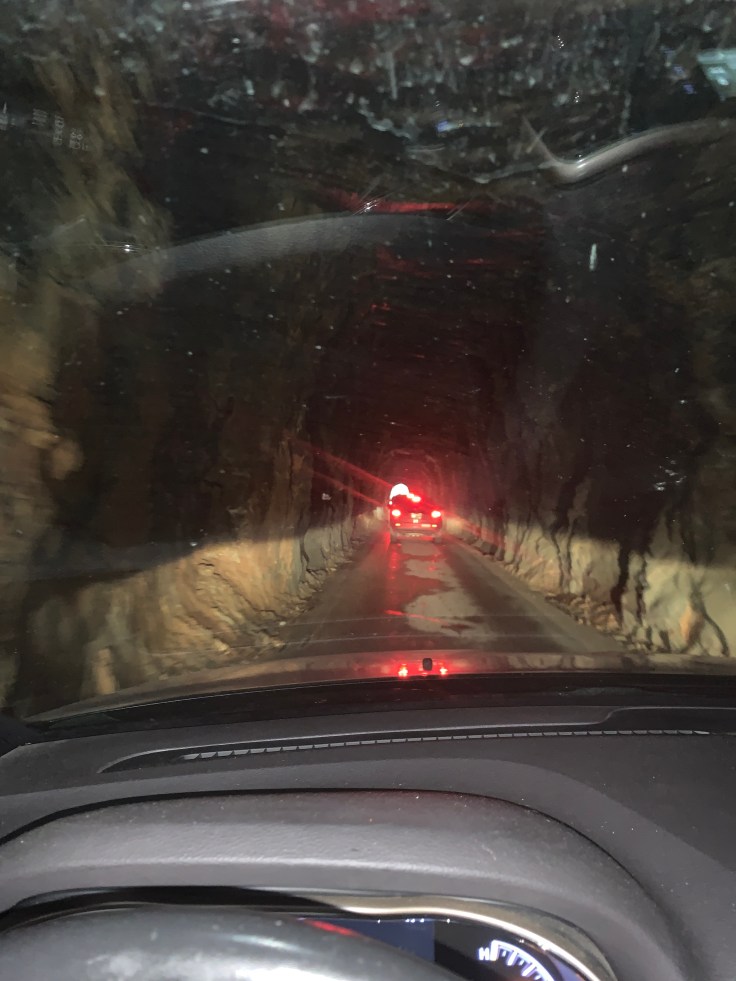 The road to it goes right past Natural Bridge. Another popular arch with camping, cabins and restaurants. After this the road goes through a one lane tunnel. Crazy. When we reached the other side there were plenty of people waiting to get through.
