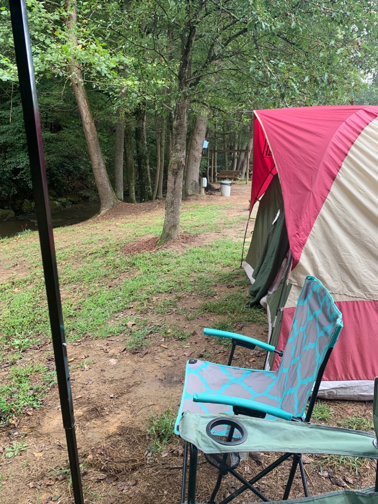 In our usual fashion of late and little or no planning we decide to meet up with Sherri at Stone Mountain NC. She was planning on hiking alone so this was her destination. We decided Friday we would pack up and camp. That didn’t happen so Saturday morning we packed up the dogs and some gear and Mike found a cool little campground near Stone Mountain. Mike the Foodie wanted to go to Johnboy’s Ribs in Elkin on the way. That turned out to be a great idea. The food was great. We brought a rib plate back for later! Then we hit the local Foodlion to get some food for the weekend. Did I say little or no planning?