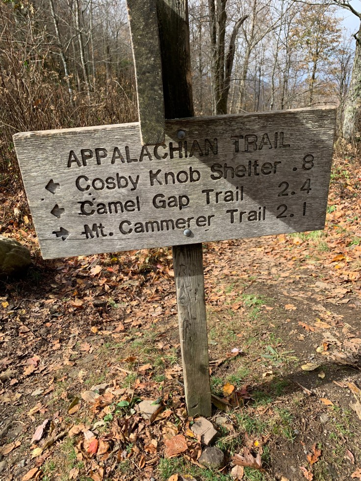 At about 3 miles we made a left on the Appalachian trail. If we went right it would go to Crosby Shelter. I would like to check it out but to the top first!
