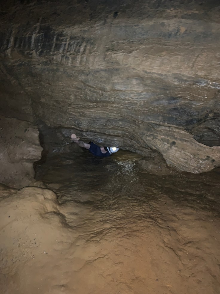 On the other side of this is a very small hole that is a long tunnel. Nick went headfirst down it. Too crazy! He had to back out of it. Brandi has a video of it! It’s crazy. I saw someone post on his pic that they went in did a summersault and turned around to come out headfirst! I looked in there! It looked impossible! Jon was trying to push him back in! The next is him using his arm to help him get back out!