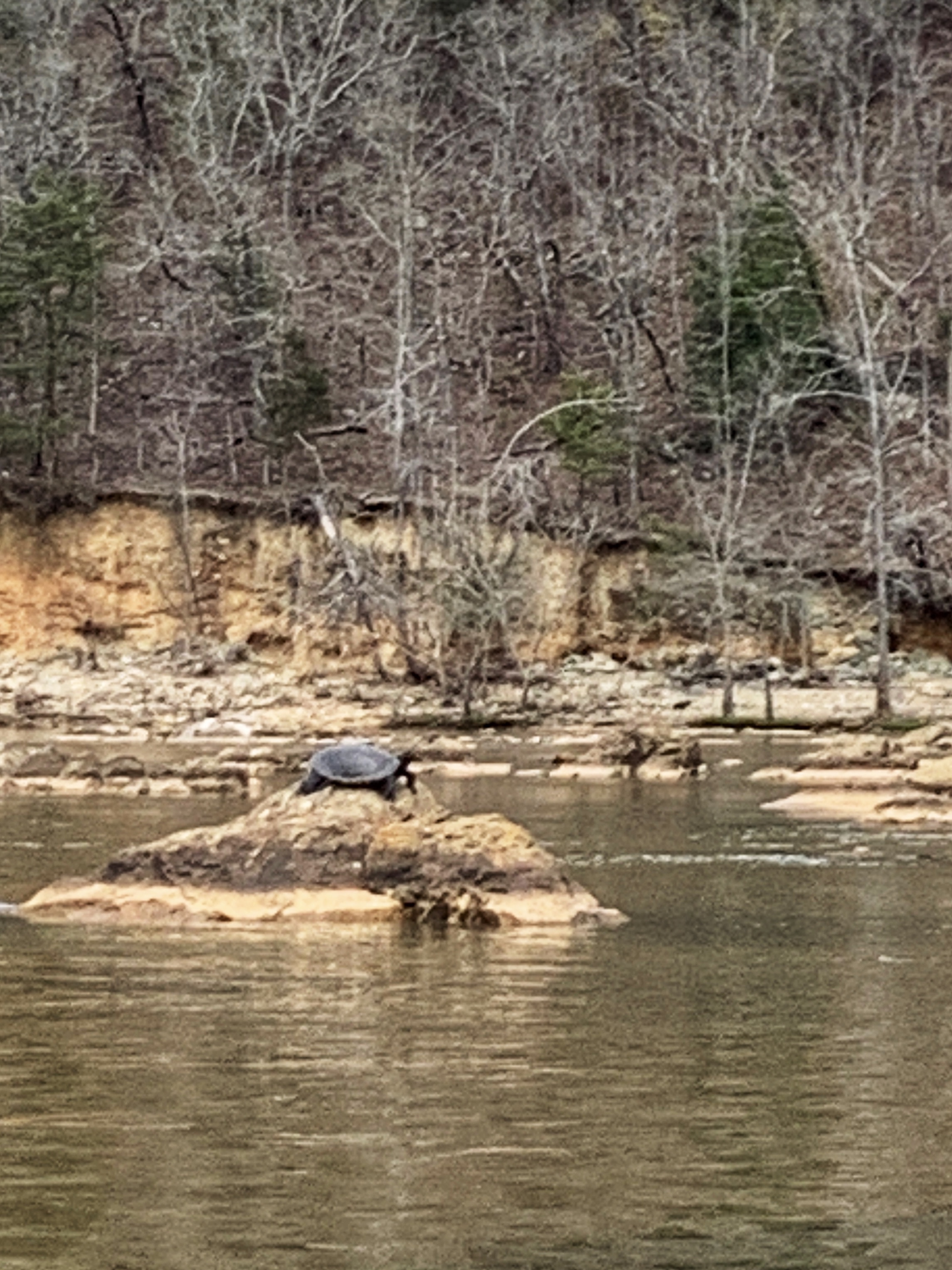 The dam was really cool all these big rocks and a few tiny rapids. We saw lots of turtles out sunning. One giant one in particular.
