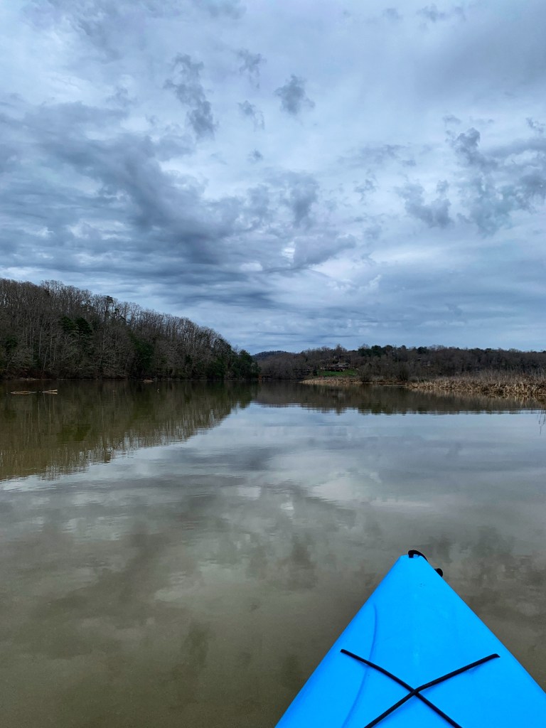 It’s a cloudy day, we dropped in at the boat ramp and decided to head to the dam first. It wasn’t windy, it wasn’t busy so paddling on this lake was like gliding on glass. It’s Lake Tillary by the way. Brandi has a new Epic Kayak. It’s sleek and nice. The one Cathy used was almost as long. I have a cheap little kayak. 😁