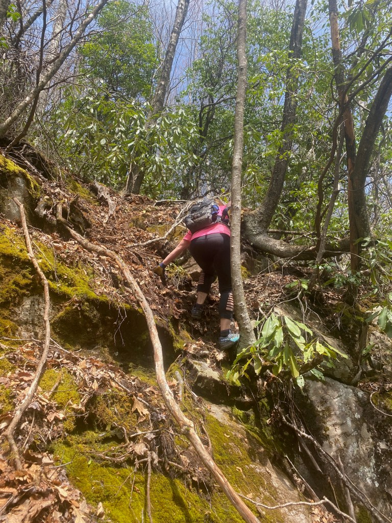 Here we go bushwhacking up that dang hill! Good lord. I didn’t do to bad. Was keeping up with her I think.