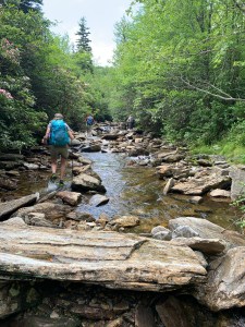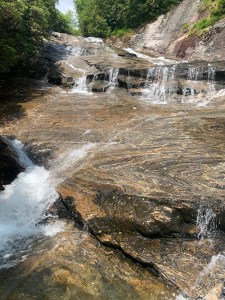 We followed this up to the base of Second Falls at Graveyard Fields. The minute we got close we could tell because of the amount of people around. A couple of us stopped short of the crowd. I was the first to go straight to the falls. I dropped my pack, asked a girl how deep it was and jumped in! OMG it was sooooo cold! It was deep too. As we walked upstream I would not say the water was cold but now? This water was cold. Andi arrived and didn’t hesitate to jump in with me. Then Lettie arrived and jumped in too.
