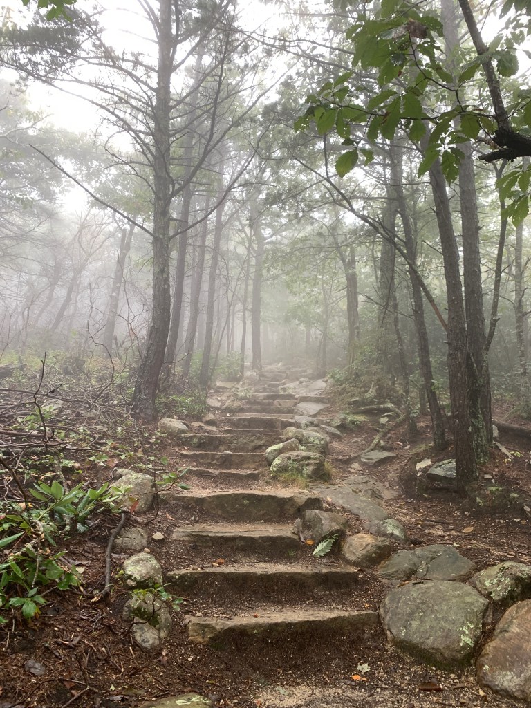 It wasn’t actually raining but more like misting. Every time the wind blew that’s when we would get rained on. It was actually a rather great day for hiking. It wasn’t crowded, it wasn’t hot and it was very eerily cool with all the fog.