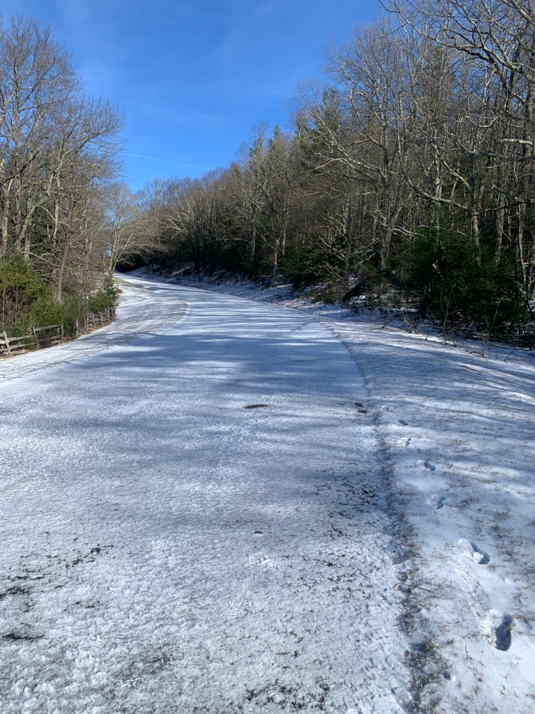 When you round the corner is the parking lot right on the Parkway. There is snow on the road and to our surprise the parkway is closed! We had the whole place to ourselves.