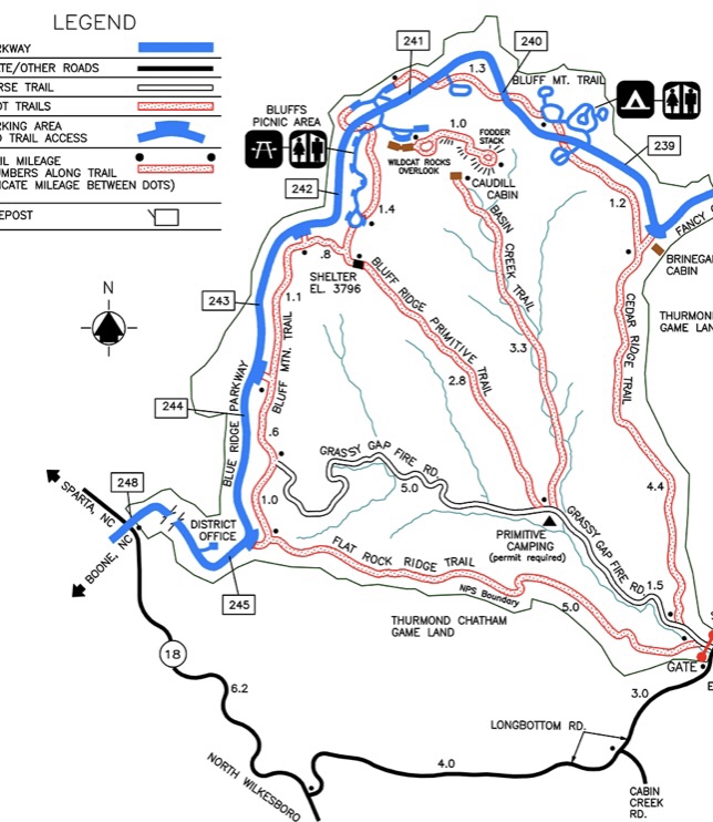 We are taking the Cedar Ridge Trail to Brenigar Cabin. This trail goes from Longbottom road and immediately takes a right and heads up to the blue ridge parkway.