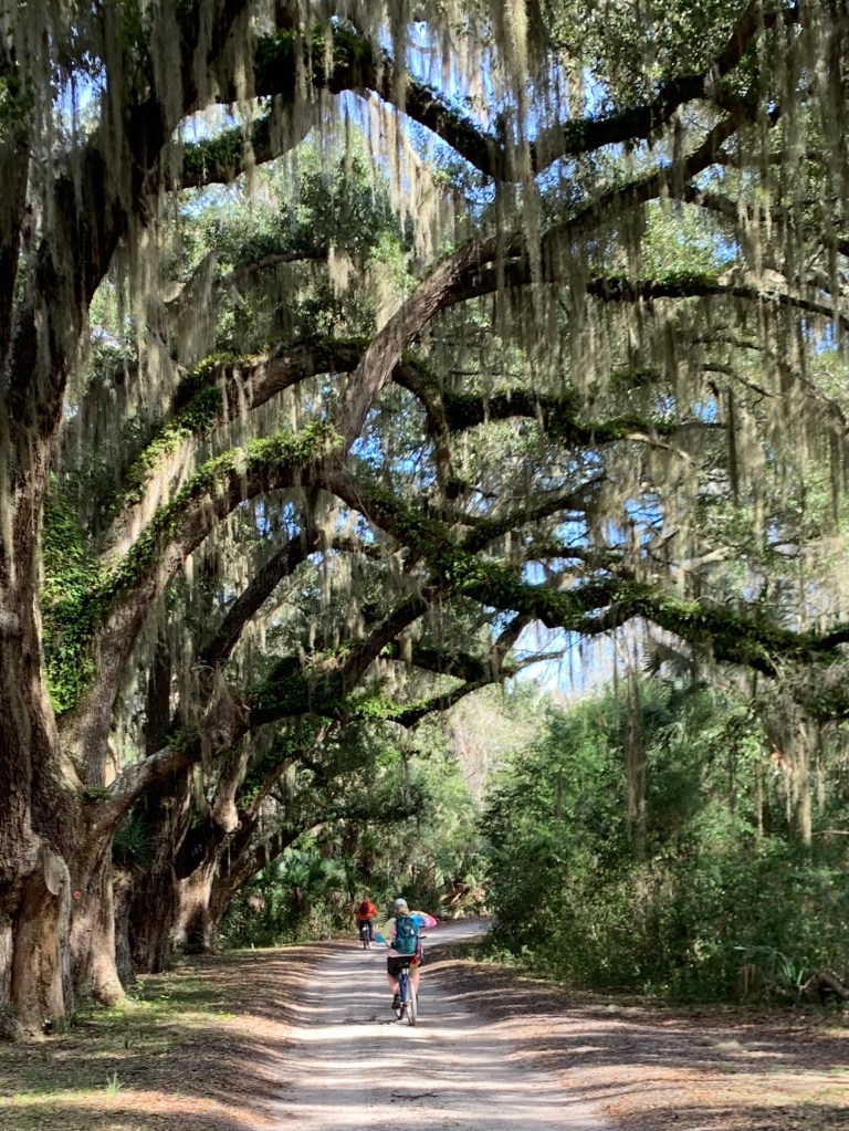 There were a few people here. We walked and looked for shells. Then we sat on the beach and had lunch. It was about another mile to the beach access near our camp. Even the beach access was amazing. Sherri and I both just love trees and who can resist Live oaks?