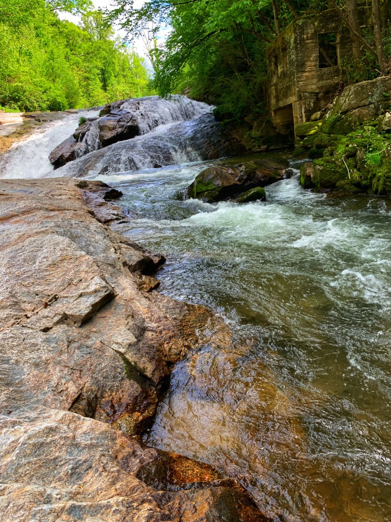 Gas shortage did not stop us. Lisa had a full tank and we decided to go to Saluda NC . It’s only 1 1/2 hours away. The first one we went to was Melrose Falls. This is not quite a mile both ways. This is actually the only hike I’ve ever done by myself. It’s parking is right on NC 176. It’s a beautiful falls probably 60 ft high.