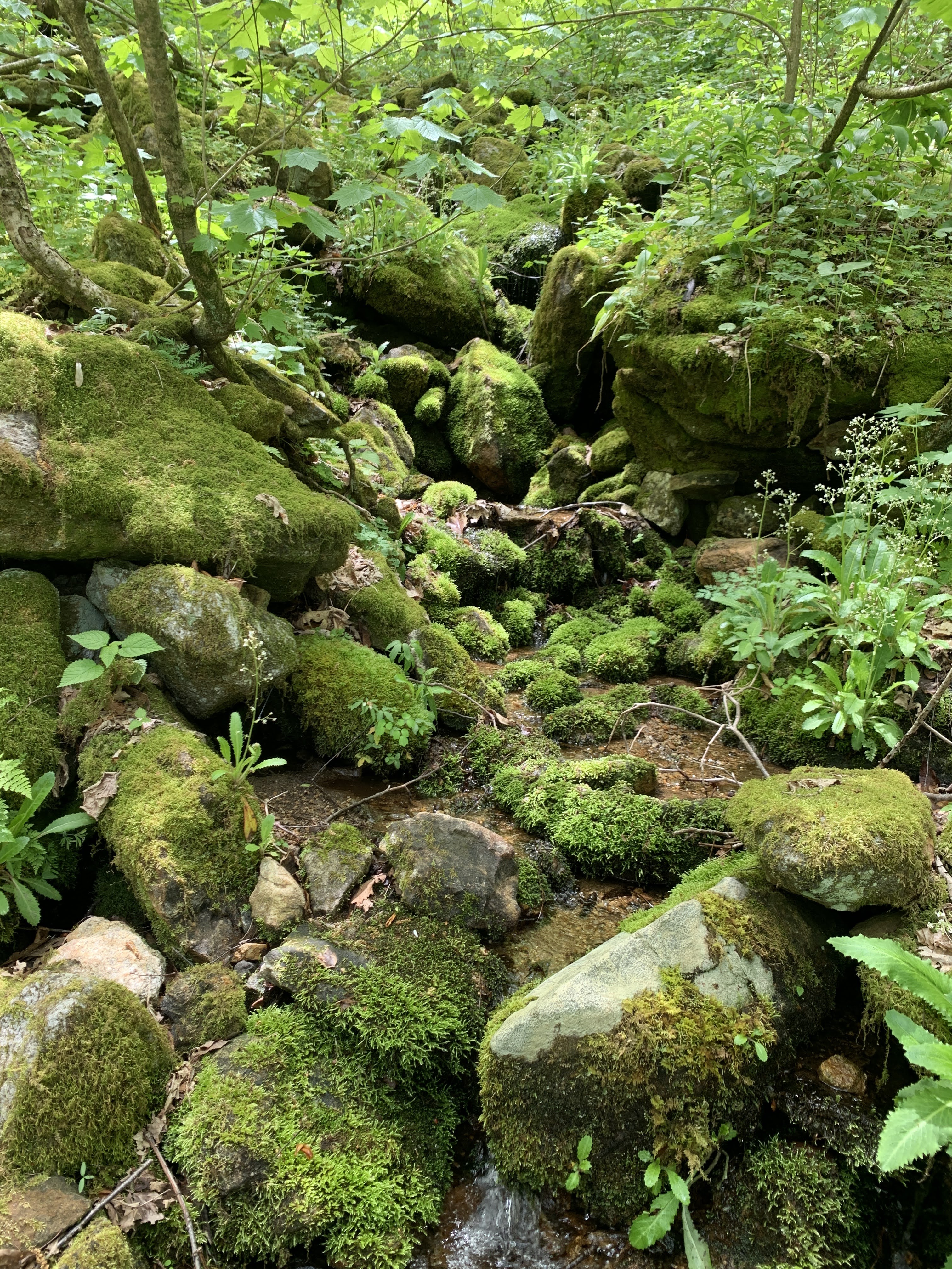 There were a bunch of stream crossings and muddy parts but nothing to get wet shoes. It was very remote and damp. One of my fav pics was the moss covered rocks on the stream.
