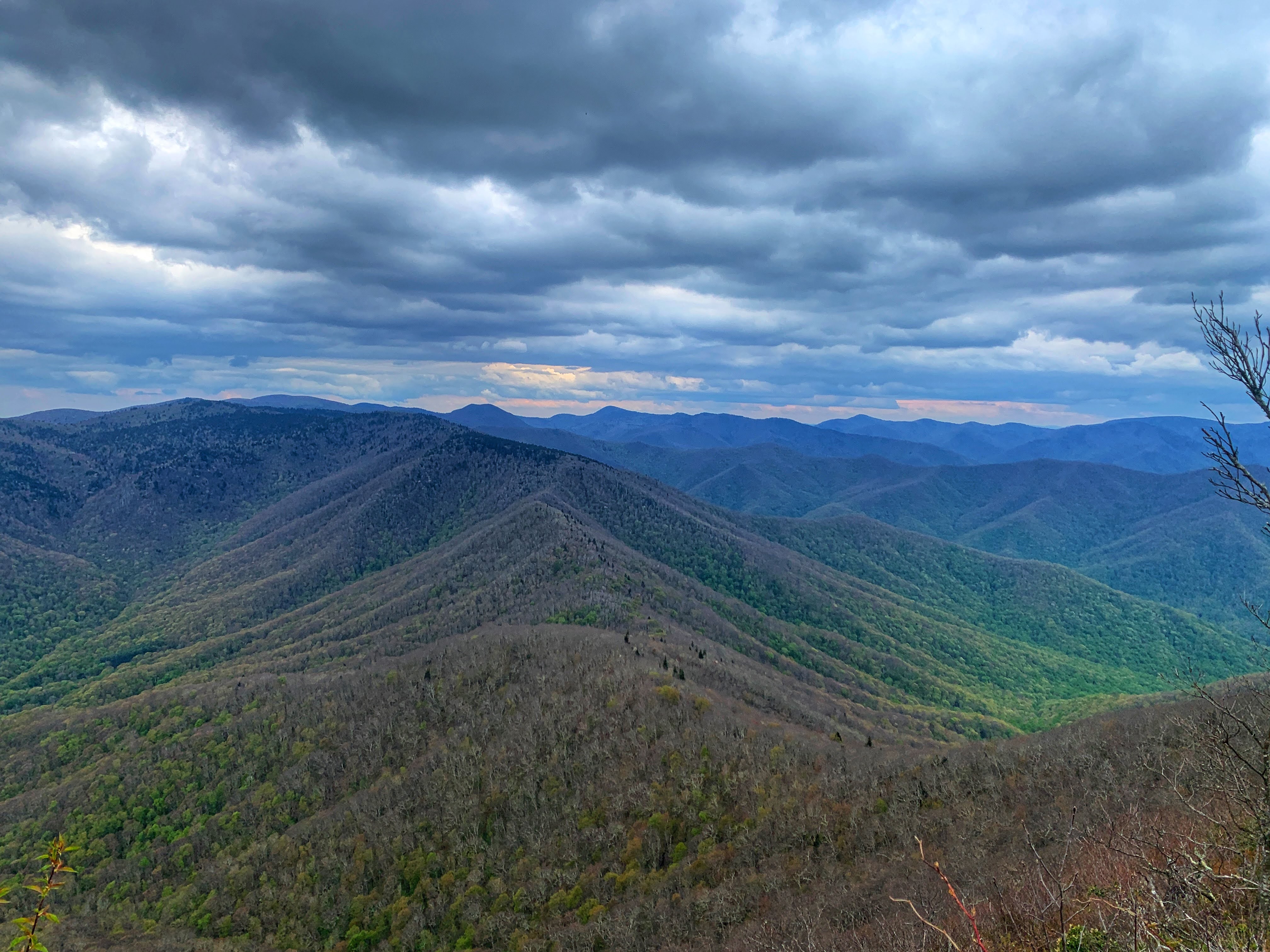 We kept trudging along. We did not see to any more people. When we finally got to the intersection of the Art Loeb Trail and the Cold Mountain Trail we sat down took a break and mostly talked about turning around. According to the sign we had gone 3.8 miles. My Gaia said we were closer to 5! Early on I was ok with turning around but now I’ve come to far. Sherri was leaning toward turning around. I encouraged her to go a little further. Then the trail got steeper! Damn it! We kept climbing little by little. I turned some music on. That always helps me. I was dancing and climbing. Then I thought maybe I shouldn’t exert so much energy dancing. She pushed on. At about 3/4 of a mile from the top she stopped. She said her legs were shaking and we had a long hike down. Some days you just know your limits. Some days I feel super strong. We could hear some loud birds above us and see the top of Cold Mountain. It looked far.