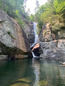 From here I headed up towards Bonus Defeat. There is a waterfall near the trailhead. It is called Paradise Falls. It is a local hangout for the App State students below Wolf Creek Lake. The trail to it is completely eroded and someone has put ropes all the way down. This is the most beautiful waterfall. Both side of this waterfall are where people jump off the rocks into the pool below.