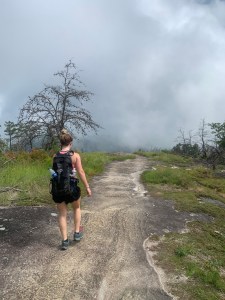 It has been threatening rain all day. When we got near the top it was foggy. I thought oh no! All this way and no view! Daina has been wanting to hike this one and it just looked like a view was not going to happen. We kept going.
