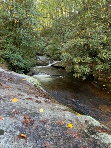 I had one more waterfall in the area. It was in Elkin and it was called Carter Falls. It is a newly created park. It has a loop path that goes to the river and around to the falls. We went to the lower one. Then we started following the river upstream. Its not deep and it went well for a while but we didn’t want to get wet again.