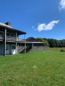 From here we decided to go to Doughton Park. The only trail we haven’t done leaves from here. I have also never been to the Wildcat Rock overlook that overlooks Caudill Cabin. It was in a really cool spot. We stopped and their is a stone overlook, also an old lodge nearby and across the street is a restaurant and gift shop. I read they raised money to open the restaurant and it just opened in May. I couldn’t find anything on plans for this cool lodge with the beautiful view.