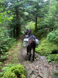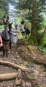 The closer we got to the top we all realized and saw evidence of the LLamas. They make the trek to the lodge 3 times a week. They bring supplies up and trash down. Turns out that Amanda is kind of a local celebrity in these parts because almost everyone we passed knew her. Luckily when we arrived where the parade of Llamas were she knew them too. They let us get near the LLamas and take pictures with them. I have always wanted to see them. Mindy is a llama finatic and no one was more excited then her!
