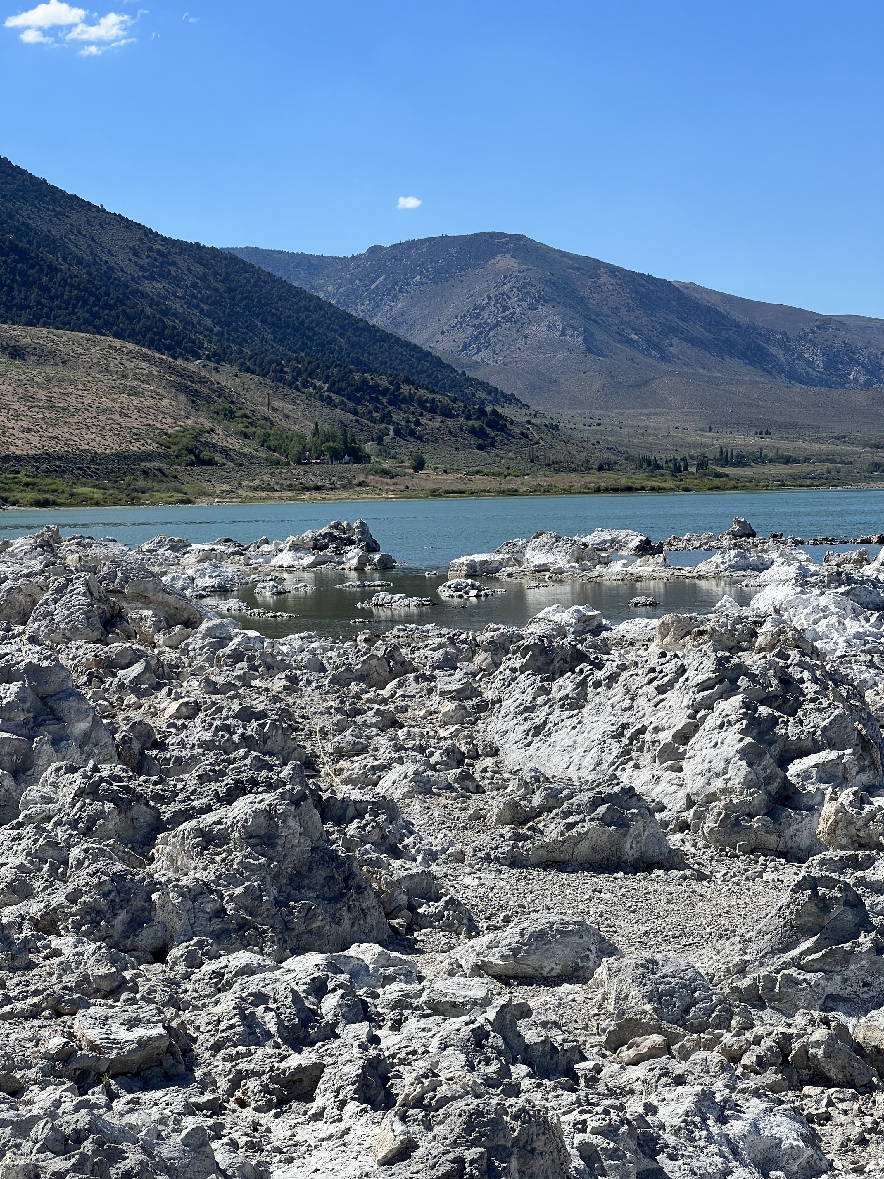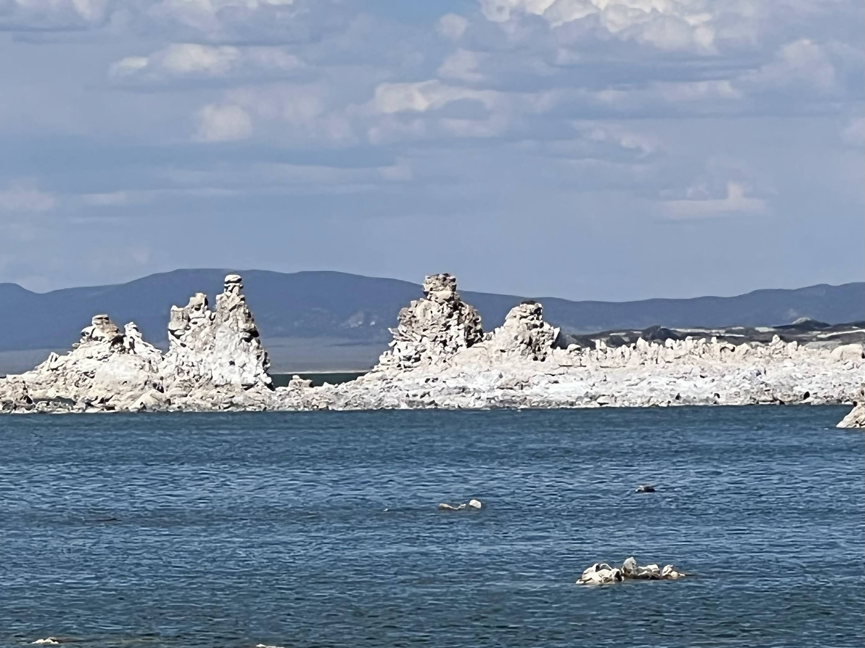 Just outside of town was Mono Lake. It is over 1 million years old and covers 65 square miles. It is the largest saltwater lake. It is much saltier than the ocean so it does not have any fish. It has “Tufa’s” which are salt spires that are formed when fresh water springs meet the alkaline water. It was completely amazing. The area had a sulfur smell. People do not seam to swim in the lake but you can. Since it is much saltier than the ocean you would be very buoyant. Old timers believe the salty water will cure many ailments. We did not see any boats. This is a state park but California has been diverting water away from the lake for many years causing the lake to decrease.
